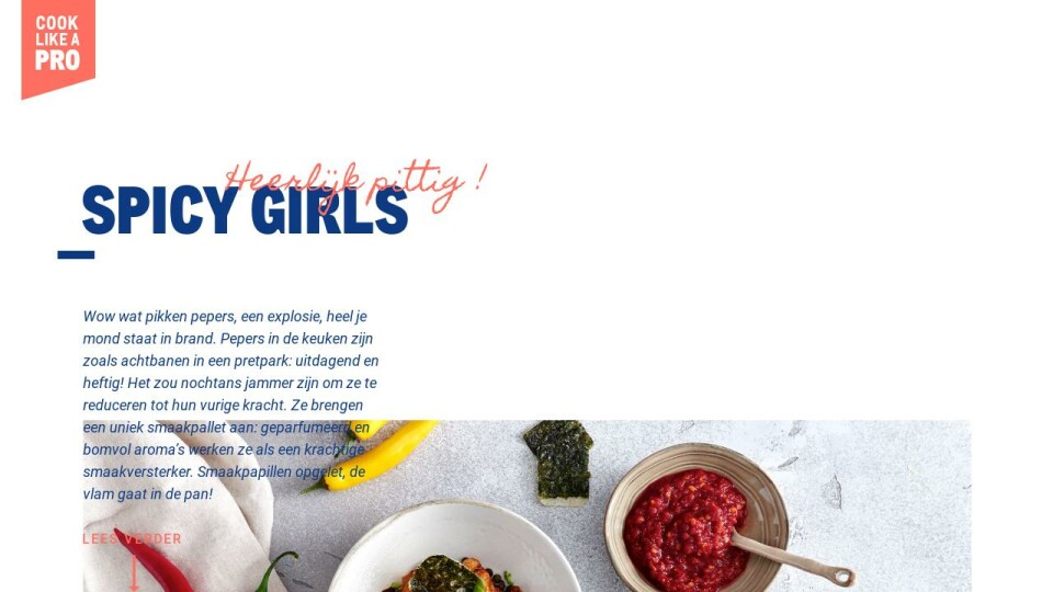 Wow wat pikken pepers, een explosie, heel je mond staat in brand. Pepers in de keuken zijn zoals achtbanen in een pretpark: uitdagend en heftig! Het zou nochtans jammer zijn om ze te reduceren tot hun vurige kracht. Ze brengen een uniek smaakpallet aan: geparfumeerd en bomvol aroma’s werken ze als een krachtige smaakversterker. Smaakpapillen opgelet, de vlam gaat in de pan!